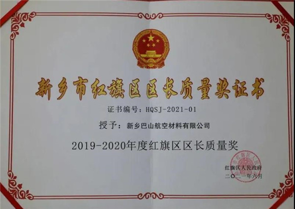 喜報(bào)丨巴山公司喜獲新鄉(xiāng)市紅旗區(qū)區(qū)長質(zhì)量獎(jiǎng)